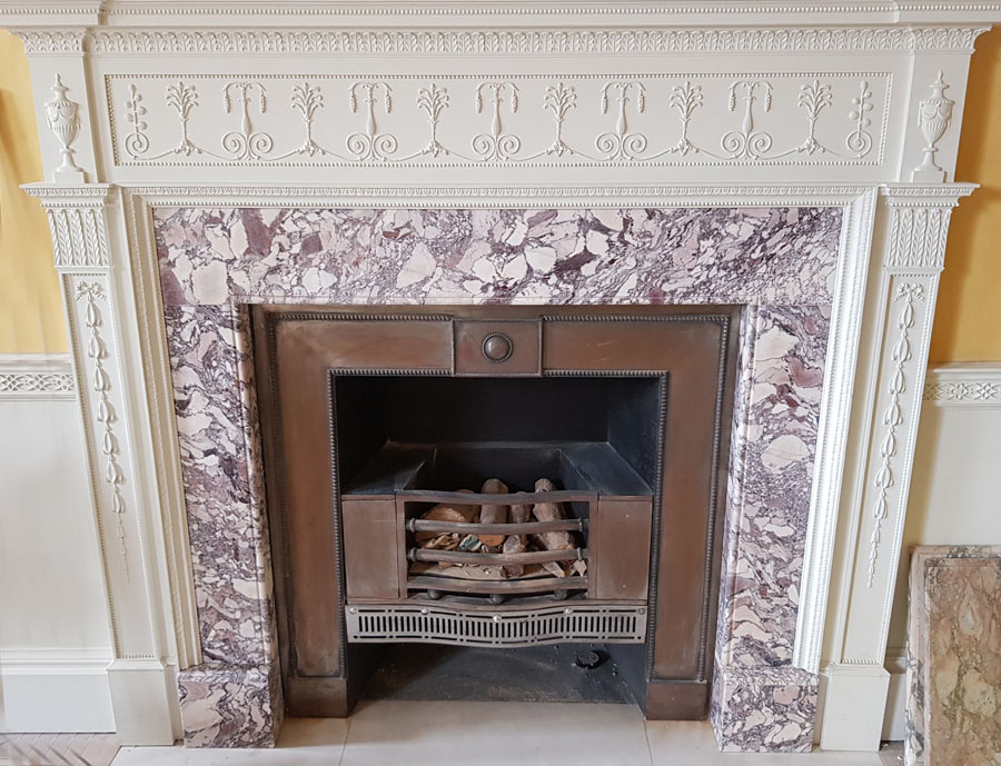 Grants of Devon design and manufacture bespoke fireplaces in English and international marbles. Ranging from very basic designs to works of art with intricate carvings to egg and dart mouldings, every one of our fireplaces is unique and one-of-a-kind.
